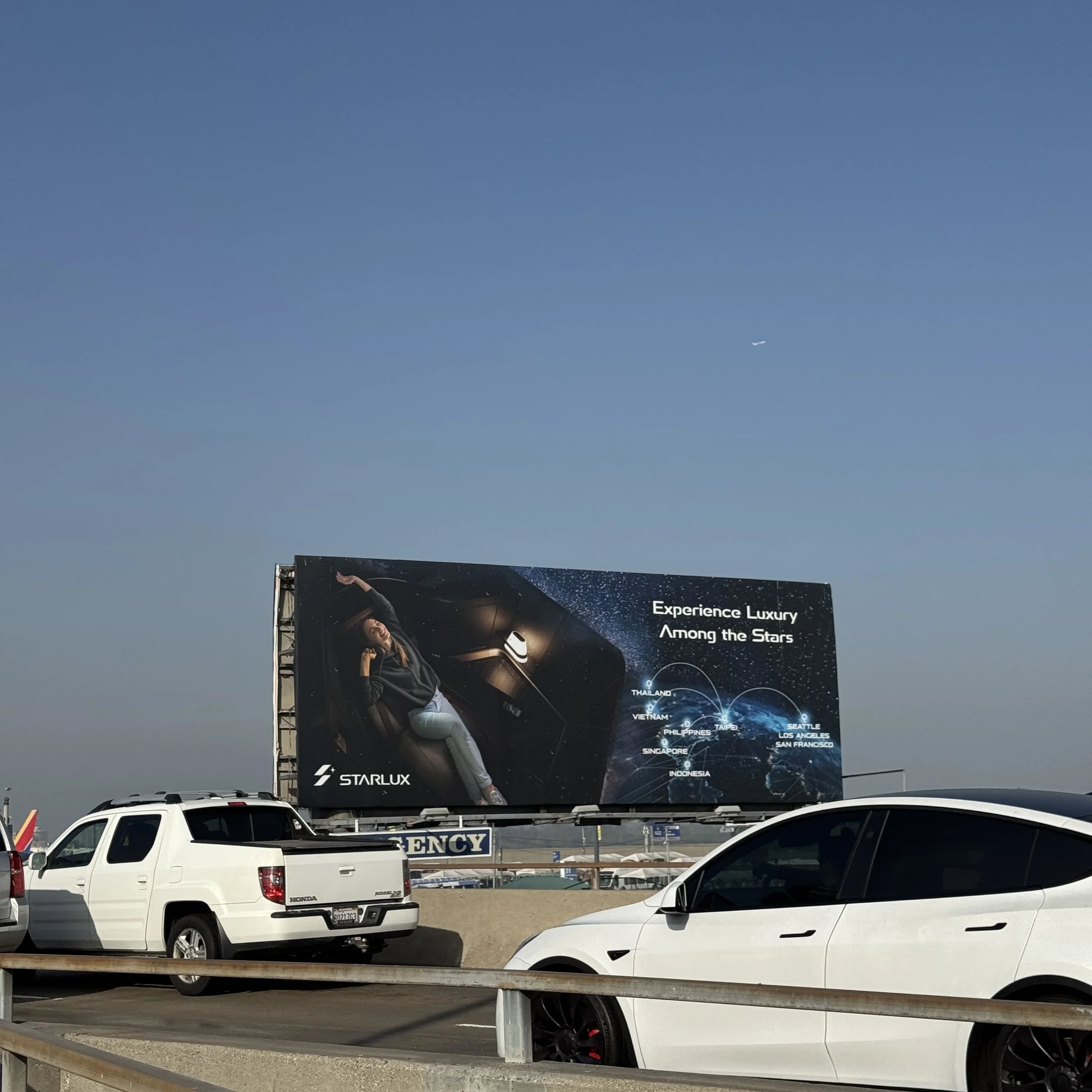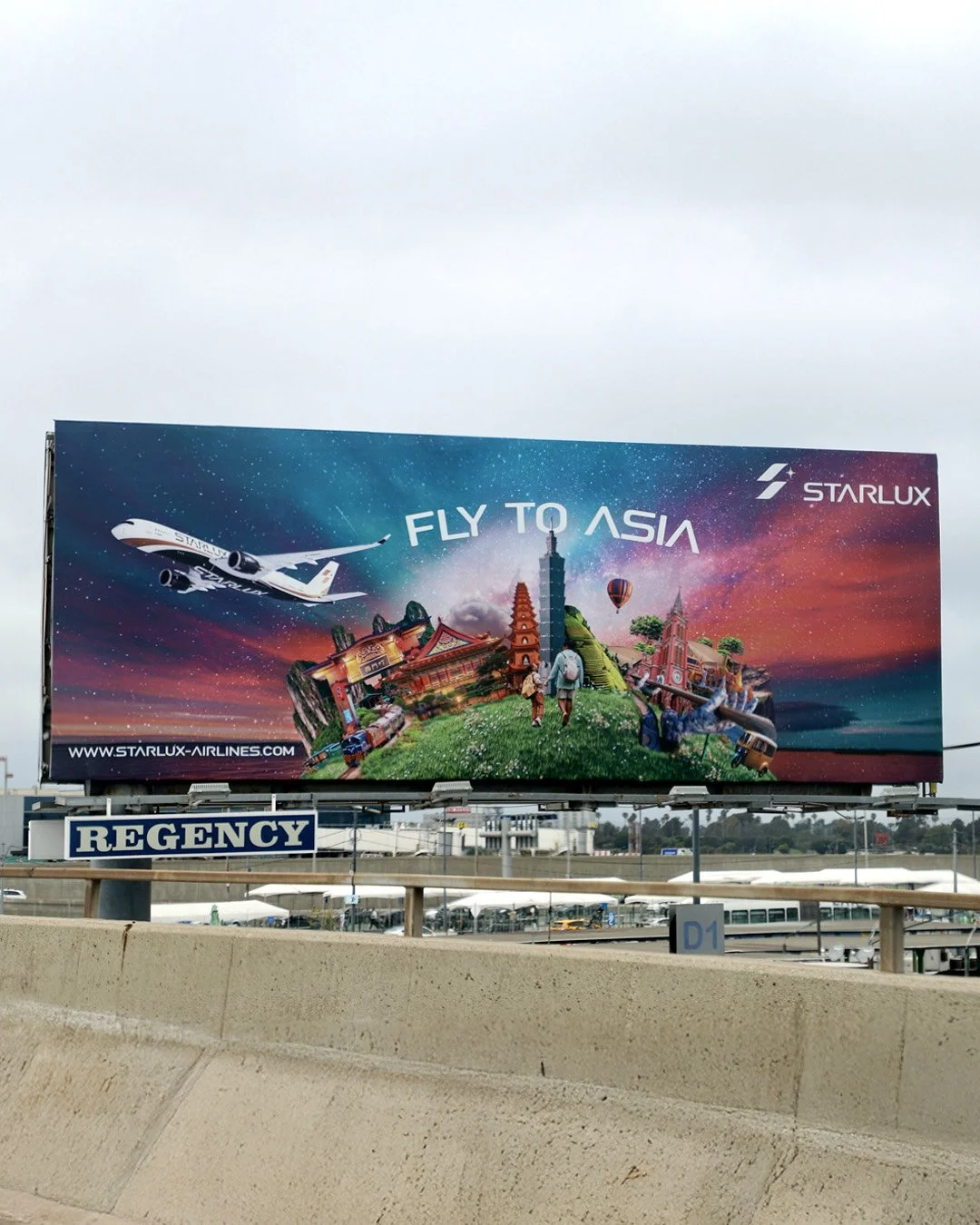 A billboard-led STARLUX Airlines campaign elevating luxury travel between Asia and North America.